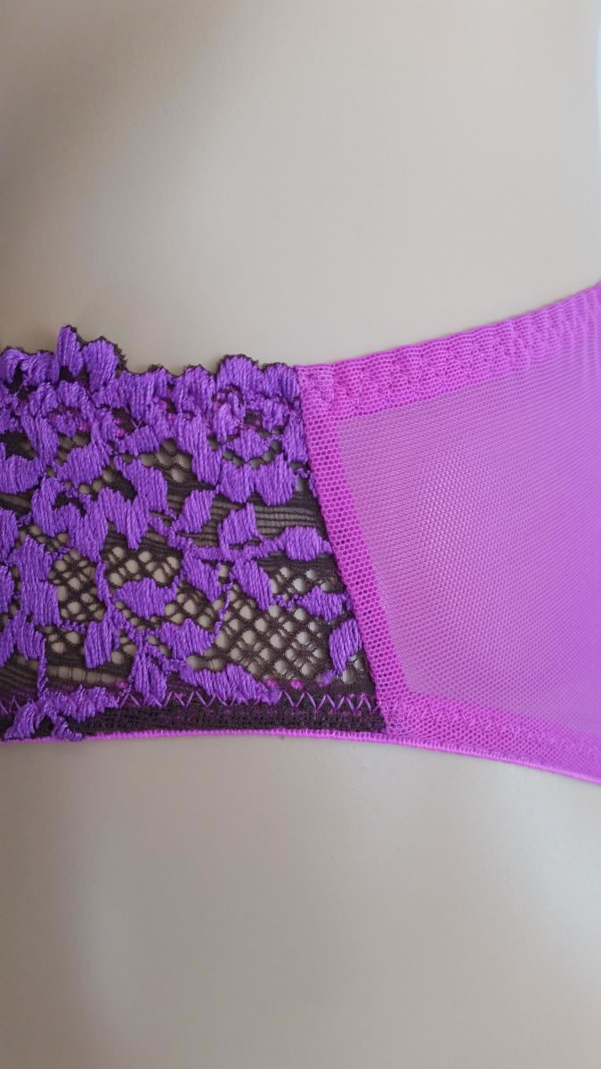 - Coordinates with matching camisole and lace underwire bra.